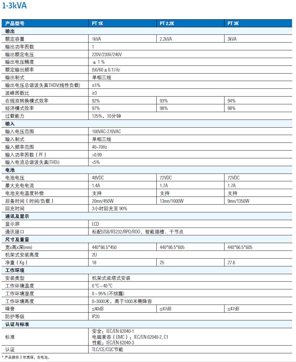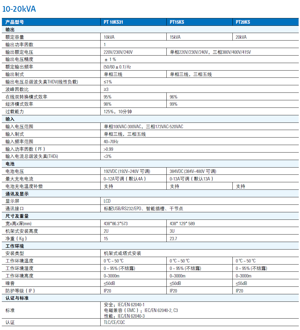 靈霄系列UPS采用在線雙變換架構(gòu),可提供標(biāo)準(zhǔn)的正弦波輸出。其安裝方式靈活,適用標(biāo)準(zhǔn)機(jī)架式安裝或者塔式安裝。電氣性能上,靈霄系列UPS兼顧可靠性及綠色節(jié)能的高標(biāo)準(zhǔn),遵循國(guó)際及行業(yè)標(biāo)準(zhǔn)規(guī)范,采用高效的電子元器件及拓?fù)浣Y(jié)構(gòu),為用戶節(jié)省大量的能源開支。1-3kVA更是符合對(duì)安全及舒適性要求更高的辦公環(huán)境電磁兼容及噪音標(biāo)準(zhǔn),免除了使用的后顧之憂。